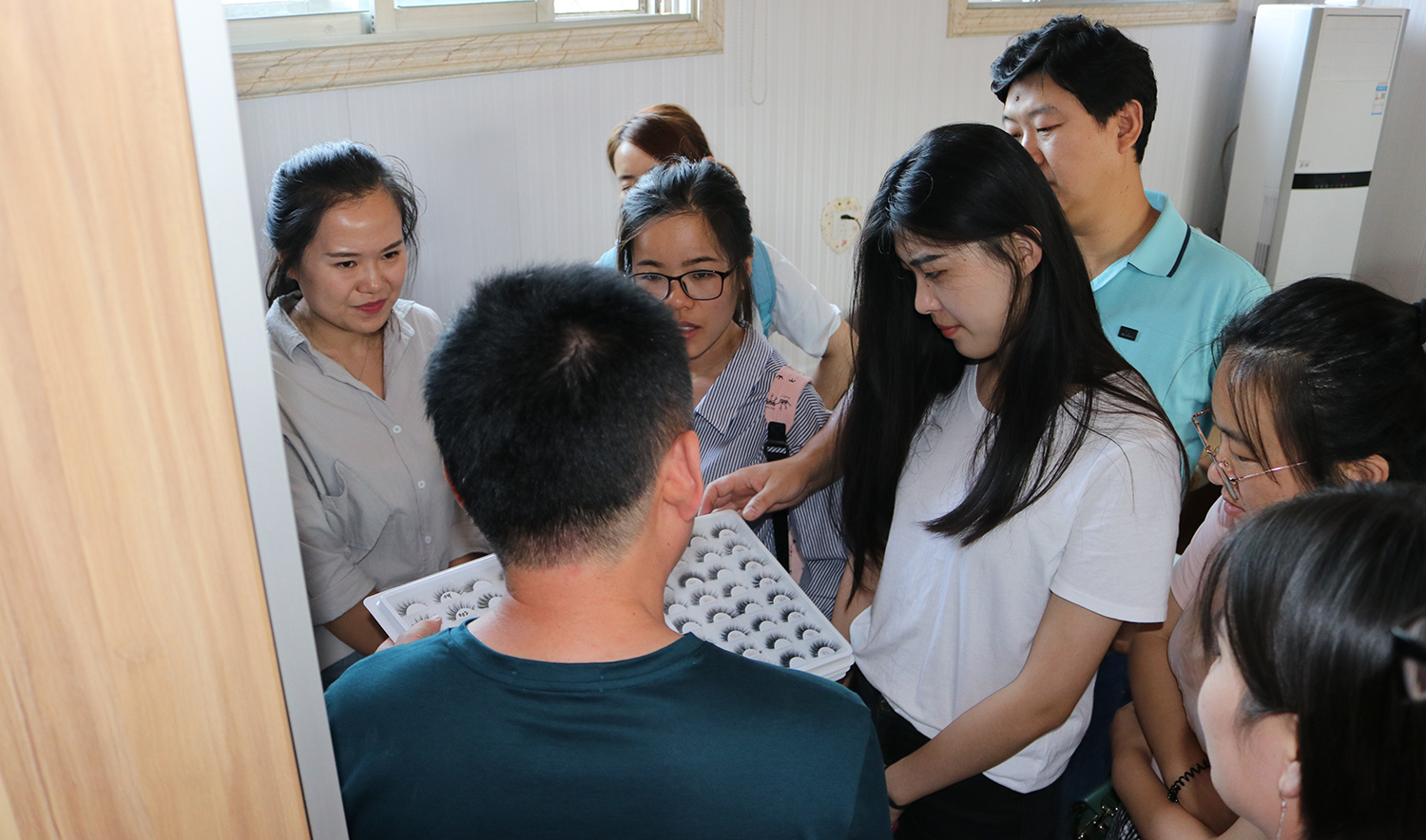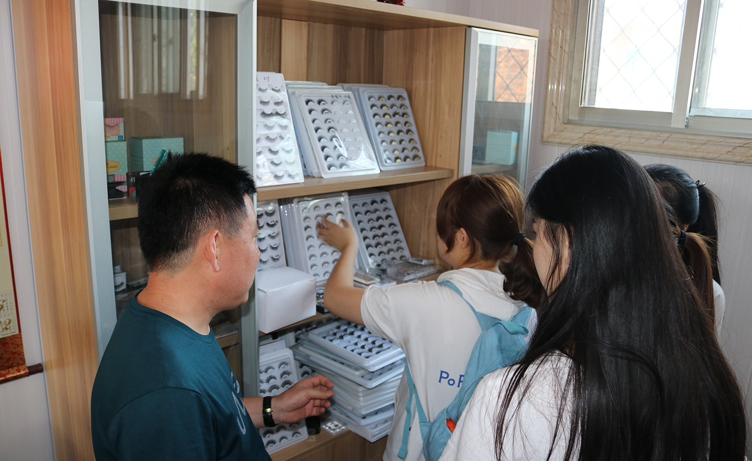 接著(zhe)王總帶我們"×→ 去(qù)了(le)他(tā)們的(de)辦公✔♦室,打開(kāi)了(le)他(tā)們♣✔的(de)樣品櫃,滿滿的(de)睫毛樣品,非常豐富,又(yòπ u)開(kāi)始了(le)細心的(de)講解。